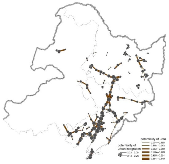 Spatial patterns illustrating the potential for integration for urban pairs in Northeast China.