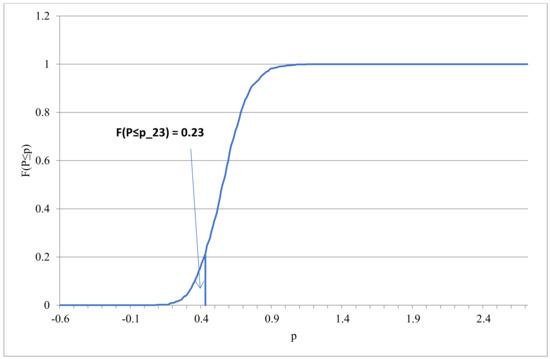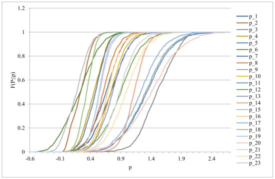 Sampling distribution (ECDF) for pm, m = 1, 2, …, 23, based on the Monte Carlo simulation.
