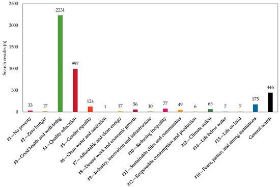 Total number of unique papers published between 2015 and 2021 for each sustainable development goal and the general search. See Table 1 for additional details.