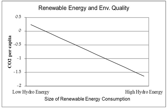 Further, when the infrastructure is developed, Figure 2b shows the decrease in CO2 emissions with the increase in renewable energy production, as confirmed by many studies in the literature.