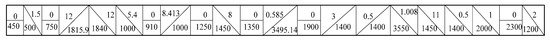 Track profile of segment from Beijingnan to Langfang.( Note: Vertical line is the boundary between the segments, the number above the horizontal line or the diagonal is the inclination angle of the segment ((Measurement Unit: degree) and the number under the horizontal line or the diagonal is the distance of the segment (Measurement Unit: m)).