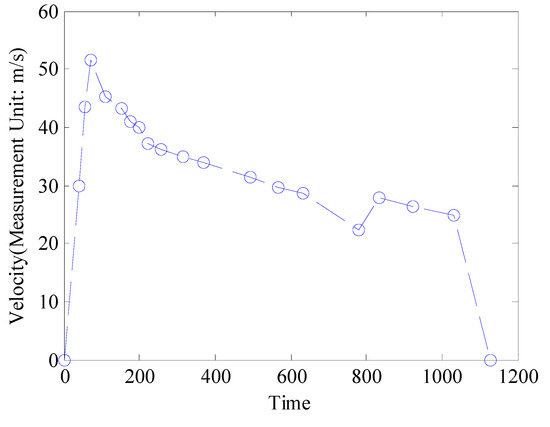 From Table 5, we can see that we need to accelerate Train G115 in four segments. The calculating result requires the train to accelerate at the first three segments. Then it coasts in the following 12 segments and the velocity decreases from 51.478 m/s to 28.728 m/s. It accelerates at the 16th segment, with the speed reaching to 27.832 m/s. After that it coasts for another segment. In the last segment, it brakes at the deceleration of −0.26 m/s2. We can see that the curve has a downward trend and the slope is declining. This is because the basic resistance is related to the velocity. With the decreasing of the train, the resistance is decreases, and the deceleration is diminishing. Then the velocity decreases. This is a loop process.