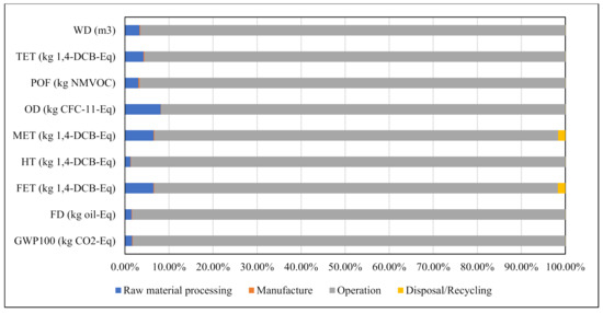 The impact categories listed in Table 6 were utilized to calculate the FU’s environmental performance over the system life cycle stages. The table also includes a description of how each category impacts the environment. However, it should be noted that these are potential environmental impacts, not actual impacts, as the LCIA methodology uses the midpoint approach for its estimation.