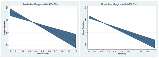 The results in Table 2 demonstrate a significant impact of structural changes in collaborative mechanisms on governance outcomes, although the structural patterns influence the selective outcomes in different ways. At the local level, the selective outcomes through the interlocal agreement increase the number of green jobs by 115 over time, as the local government’s position in the collaboration becomes 0.1 of a level closer to a centralized position. That is, if the local government becomes more centralized in the collaboration, it gains better selective benefits in addressing low-risk coordination dilemmas. However, as a local government creates 0.1 of a level of more closed relationships in collaboration, the selective outcomes decrease by 27 fewer green jobs over time. In other words, if the local government changes network partnerships into more tightly clustered partnerships in order to address high-risk cooperative dilemmas, it gains fewer selective benefits through the collaboration. Figure 3 shows how the changes in the relative structural positions in the collaboration affect the marginal effects of selective outcomes over time.