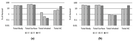 Summary of aerosol destination percentage of (a) Manikin 1 and (b) Manikin 3.