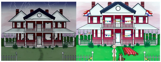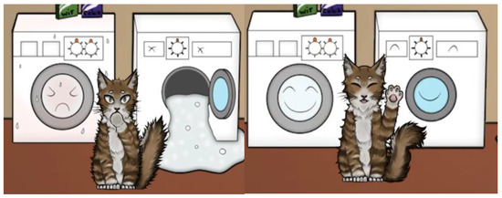 Figure 4). Behind each door a room, e.g., kitchen, bedroom or bathroom, is situated in which a game character in the form of a confused electrical device has been located. During the mission sessions, the family is accompanied by a cat named Kyoto, the professor’s former pet.