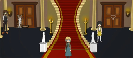 66]. The story starts at the moment that a family arrives at a dilapidated country house. The story is presented through text blocks and explains that a professor had caused a failed experiment in this country house (see