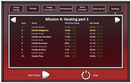 69] describe this design as ‘artificial social competition’ where opponents offer humanlike features, by means of real-looking scores and family names, without actually being human but simulated by a computer algorithm. The energy conservation data of virtual households follow a logical pattern based on the real-time energy conservation results of the real household (see
