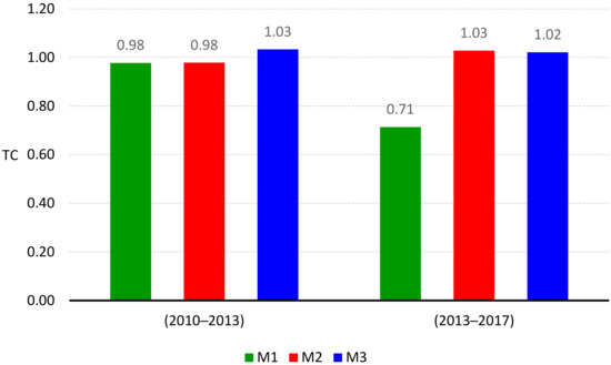 | TC_M3 (2010–2013) | 1.031 | 1.002 | 1.032 | 1.068 | 26,914 | 0.000 | (1–4) ***; (2–4) ***; (3–4) * |