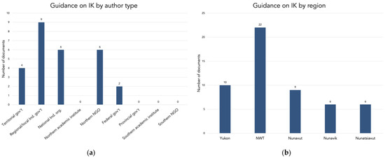 Guidance on Indigenous knowledge: (a) by author type; (b) by region.