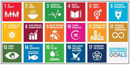 Decided in 2015 and put into action in 2016 by the United Nations, the 2030 Agenda of Sustainable Development marked the transition from the former and limited Millennium Development Goals [25] towards a new level of topic coverage and commitment. The 17 formulated Sustainable Development Goals (see Figure 1) comprise a wider range of grand societal challenges (from a social, ecological, and economical point of view), making them applicable beyond specific (e.g., only developing) countries.