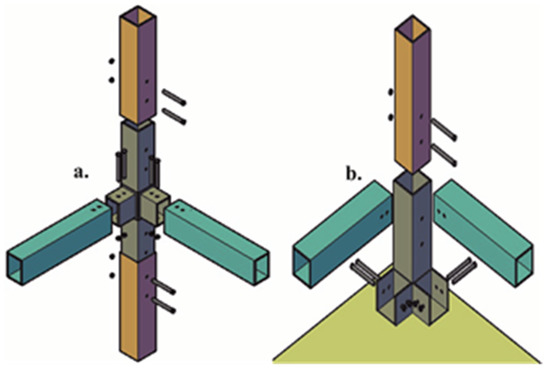 (a) Joint between columns and beams. (b) Joint between columns and ground floor. Source: [39,40].