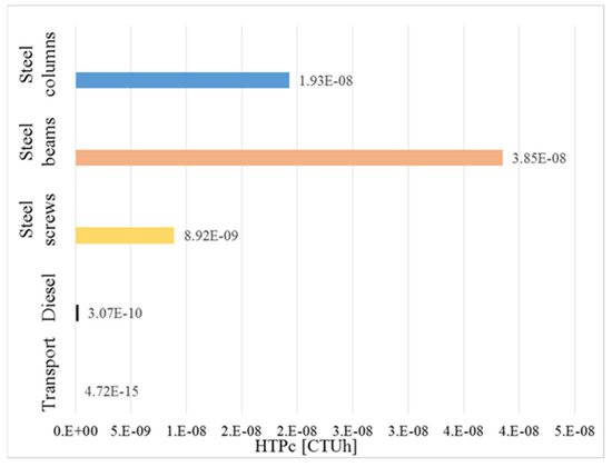 Cradle-to-gate impact of the steel structure for the Human Toxicity indicator.