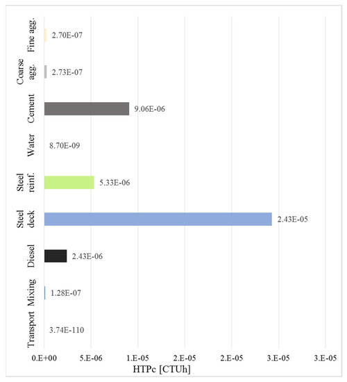 Cradle-to-gate impact of the concrete slab for the Human Toxicity indicator.