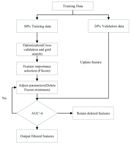 We conduct a feature filtration on some parts of training set, and divided data sets into training sets and validation sets. First, we make XGBoost model which contains that contains all the feature training sets, use the five-fold cross validation to find the optimal parameters, and sort the features based on Fscore. Then we filter the sorted feature sets, evaluate whether a feature can be preserved under Fscore value, and delete the feature set which is scored lowest one by one. The AUC value of the validation set under the new feature subset is used to determine whether the predicted results of the remaining features are better or not. Both the number of features and the model improvement effect should be taken into consideration when selecting features. As some features have limited improvement effect on models, this experiment should use features that have greater impact on prediction of PM2.5 concentration. The threshold h is set (the exact value of H is set according to the experimental results) to select the features. If the AUC value of the validation set increases more than h, the recently deleted features are saved. If the AUC value increases less than h or decreases, the deleted features are still removed. The algorithm can filter out the features that have a greater impact on the target variable and reduce the redundancy between the features.