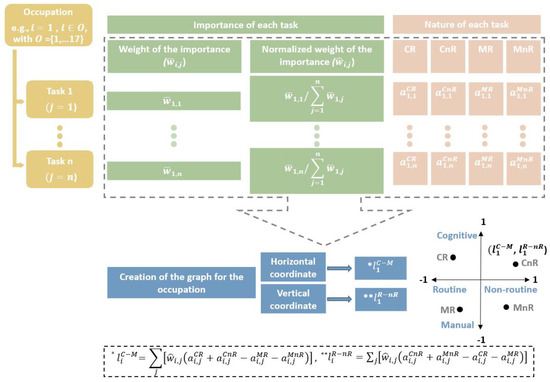 The above indices can be considered as coordinates for mapping a particular operation in the cognitive/manual and routine/non-routine 2D-space where the routine against non-routine nature correspond to the horizontal dimension, while manual versus cognitive nature correspond to the vertical dimension Figure 1. A schematic representation of the applied methodology described in this section can be shown in Figure 2.