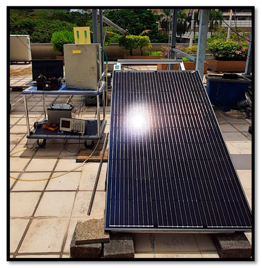 To test the system in a real environment, the whole setup was tested and investigated for four hours under Sun irradiance, as shown in Figure 4. The PV panel was exposed to the Sun and the working of the convertor and electrolyzer was continuously monitored to examine the real time performance of the converter.