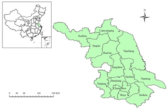 The researchers selected Jiangsu as the research target for three reasons: (1) Jiangsu has a shortage of water resources; (2) industry in southern Jiangsu and northern Jiangsu is currently in a state of transition and optimization; (3) the economic development, environmental regulations, and external environment of the province are consistent across the province. By using Jiangsu as the research target, the researchers could more effectively quantify the environmental effect of industrial transfer in the high-quality economic development process and devise more effective responses for addressing environmental quality changes caused by high-quality economic development.