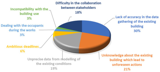- The results revealed that most of the stakeholders think that the issues that related to the lack of accuracy and knowledge about the existing building, and imprecision on the modelling conditions can be overcome thanks to the BIM, as well as the lack of communication between stakeholders.
