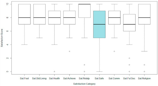 Further when comparing the same question (Sat.Safe) at Time 2, it was evident that the score range had shrunk, spanning from 4 to 10, which may indicate that those scoring below 7 at Time 1 were more assured over time (see Figure 2). However, as stated above, the scores of this domain remained lower than the national average (see Table 2), which possibly indicates that participants were not fully satisfied with their safety at the MPCommunity. Indeed, there was a great deal of discussion in the qualitative data regarding safety and security.
