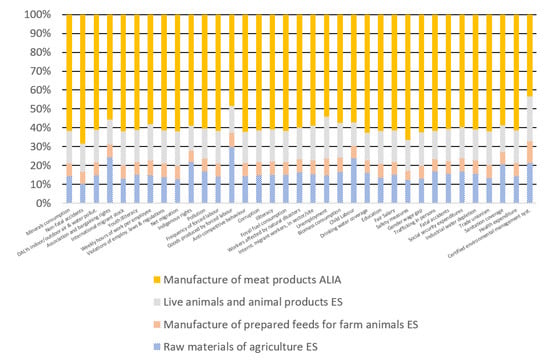 The usage of S-LCA for product assessment in industry is scarce, very recent, and comes completing the more matured environmental and cost life cycle assessments []. A literature review shows that the application of S-LCA under a Circular Economy approach is lacking application in referring to suppliers’ selection or creating indicators to measure sustainability. In the case of the meat industry, some analyses cover just the farming phase (calf farming in Mexico) []. The closest to our case is a study about the Swedish pork production sector that was published in 2020, focusing on the analysis of differences between organic and conventional production at a sectoral level [].