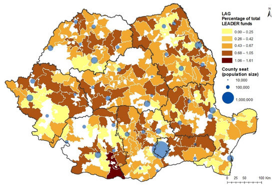 In order to verify the validity of this statement, several steps will be followed, which represent the main objectives of this study. These consist in (1) characterising the Romanian rural area’s level of development prior to the LEADER financing, (2) analysing the spatial distribution of submitted projects and LEADER funds accessed at LAGs level, and (3) determining the relationship between the initial development level of LAGs and the per capita LEADER funds allocated at the LAG level using spatial statistics tools. All this will highlight the behaviour of the LEADER program to be a selective or an inclusive tool and the ability of the initial development context of the LAGs to influence this behaviour.