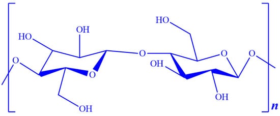 Arguably, this unbranched polymeric material, with the well-known molecular structure illustrated in Figure 6, is the most significant component within the plant cell structure. A naturally occurring polymer with almost boundless application potential in the field of chemical sciences, cellulose has, over the years, gained increasing prominence in multidisciplinary research studies and product development. In addition to its unlimited availability, cellulose is characterized by its highly functional groups, hydrophilicity, chirality, biodegradability, versatility in chemical modifications, and its capability to form numerous semi-crystalline fibers morphologies, thus making it a cornerstone of many natural structures [158,159].