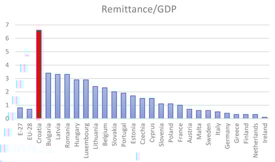 - Glas, I. The Money Sent by Guest Workers in Croatia Exceeded the Earnings from Foreign Tourists by 23.5 Percent. 2021. Available online: https://www.glasistre.hr/hrvatska/-novac-koji-salju-gastarbajteri-u-hrvatskoj-premasio-zaradu-od-stranih-turista-za-235-posto-749835 (accessed on 10 October 2021).