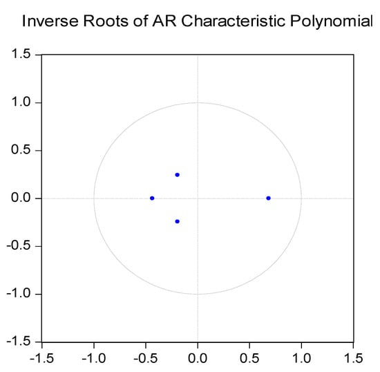 The next step in the procedure is to examine the model’s dynamic stability. One way to do this is to inspect whether any of the characteristic roots fall outside the unit circle. Figure 3 demonstrates that none of the roots fall outside the unit circle, which suggests the VAR models are stable and that the results are internally valid.