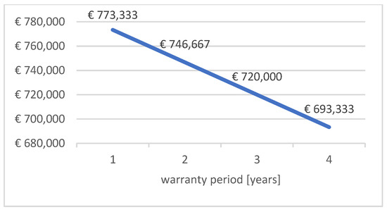 The method’s sensitivity analysis shows that the assumed number of life cycles has the greatest impact. An increase by one cycle increases the value of the maintenance cost by about 25%. The adopted warranty period has the least impact. These are certain dependencies that should be taken into account when considering the obtained results.