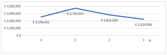 Figure 9 allows concluding that, despite the higher price of materials at the beginning of production, the most beneficial solutions in the entire life cycle of the facility turn out to be the most durable solutions, which are the most expensive to purchase. This trend has worked well for all four cases considered.