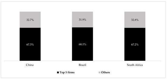 This article employs the results of our 2015 EMGP reports [,,] to make logical and informed insinuations about the structure and profile of NFEMNEs originating from China, Brazil and South Africa. We also synthesise and compare the outcomes of the 2015 EMGP reports of these OFDI home countries. All three reports were prepared by the authors using the standardised research methodology of the CCSI-EMGP, which consists of three main segments, namely eligibility requirements, data to be collected, and sources of data []. In the eligibility requirements segment, an enterprise should meet the following criteria to be eligible for inclusion in the country rankings: first, it must be a multinational enterprise; second, it has to be based in the survey country; third, it should be neither a financial services enterprise nor an outward investment purely financial in nature; and fourth, it must not be coordinated by an institution or person geographically located in another country or an institution in the survey country that files a publicly accessible amalgamated financial statement with a government agency. Other than ruling out financial services, the eligibility requirements do not declare anything about ownership or the nature of the enterprise. More explicitly, a qualifying multinational may be listed or unlisted, state-owned/controlled or privately owned/controlled and may be in the primary, secondary or tertiary sector.