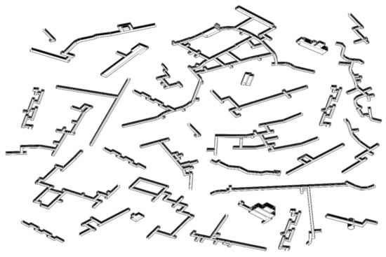 The rapid expansion of the system during the war needed to provide shelter to an increasing number of civilians, and therefore required the implementation of solutions that were easy to build, cheap, and repeatable. For this reason, designs of “typical shelters” were introduced. These highly adaptable designs, based on simple technologies, allowed for the construction of such structures on almost any plot of land, regardless of its size and ground conditions. It was not uncommon to begin construction work without first determining the final shape or capacity of the facility. If the workers encountered problems with excavating the earth, they would change the direction of the tunnel; if it was not possible to dig any further, the tunnel simply ended at that point [10,25,26]. This flexibility was achieved by using a modular design approach that focuses on the functionality of the facility regardless of its shape or size. This systematic approach allows existing structures to be classified without analysis of each one, and similarly flexible redevelopment solutions based on the principles of modularity, adaptability, and flexibility to be prepared before costly and time-consuming spatial and structural building surveys are carried out. Analysing a selected group of over thirty underground shelters, it can be concluded that despite the great variety of forms they all share a common tunnel scheme. The most common solution was a long meandering corridor with two exits equipped with airtight doors. They were usually placed shallowly underground, either entirely below ground level using excavated material from the construction site, or partly below ground level using excavated material to make an additional protective and camouflage layer on top of the shelter, forming a small mound [10,25,26]. Both structures are barely visible from the air even with modern technology, and their location is only betrayed by a slight shadow from the embankment and a slight change in colour of the vegetation on top of them.