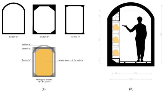 Sections: (a) overlapped section of different tunnels found in the city and (b) section of the designed tunnel.