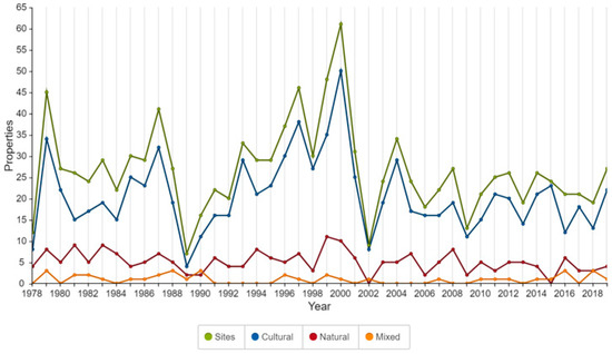 - UNESCO. World Heritage Statistic; UNESCO: Paris, France, 2018. [Google Scholar]