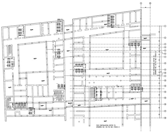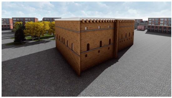 Murabba Palace is in Riyadh, Kingdom of Saudi Arabia. It was built around 150 years ago. Murabba Palace is one of the most famous historic buildings in the Kingdom, with an area of 988,464 m2 [30,31]. Figure 2 depicts plans such that according to these AutoCAD® plans, the BIM model was generated based on the DesignBuilder® platform, as shown in Figure 3. The building gets its name from its square shape. It is one of the city’s museums and comprises 12 designated areas with conference rooms, meeting rooms, and administrative offices. The primary materials used in its construction were bricks, indigenous stones, tamarisk trunks, and palm-leaf stalks. The building’s walls were built using straw-reinforced adobe with engraved ornaments on the coating, as shown in Figure 4.
