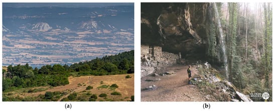 Examples of images with different destination attributes: (a) Forests, mountains and countryside; (b) Forests, water and cultural heritage.