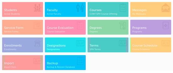 This module provides administrators with a dashboard access and allows administrators to view/edit/add/delete/update information on students, faculty, and course and degree offerings (Figure 13). Administrator can also manage the user accounts and can set access controls to access their respective data depending on the role of the users. Further, the module allows for importing additional data that might be critical in supporting an evidence-based decision-making model of academic management. This module allows administrators to manage centralized data across all academic and administrative units, allowing for an evidence-based model of academic management.