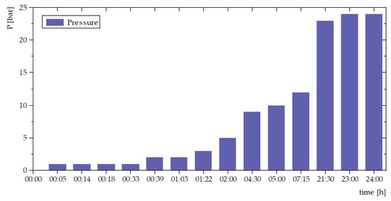 Figure 5. The pressure–time relationship monitored in the experiment Parr 174. The oxygen content in the air allowed for a more rapid exhaustion of the reaction (Al oxidation) than that of the Parr 212 experiment, which instead took place over a wider time and developed a greater pressure.