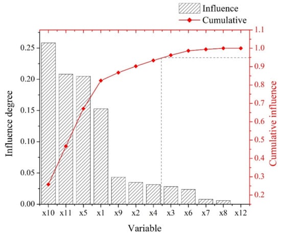 In this paper, random forest is used to select the key factors affecting offshore wind power investment, and the dimension is reduced according to the degree of correlation. The key factors are retained, and the unimportant factors are eliminated, so as to achieve the purpose of screening out key factors. This paper sets 95% as the critical value for screening key influencing factors. The corresponding cumulative interpretation degree is calculated according to the influence degree of the above 12 variables. The results are shown in Table 5 and Figure 3.