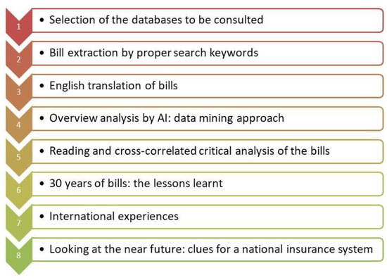 In order to identify and analyse the bills proposed for the NHIS in Italy eight methodological points illustrated in Figure 2 were followed.