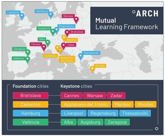 Overview of cities involved in the ARCH mutual learning activities [32].