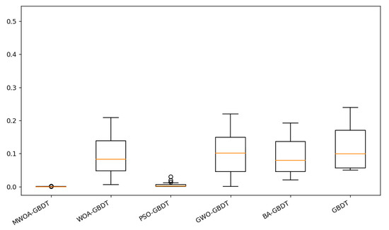 | MWOA-GBDT | PSO-GBDT | BA-GBDT | GWO-GBDT | WOA-GBDT | GBDT | |