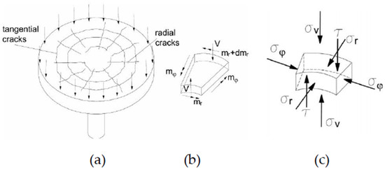 The punching shear strength of flat RC slabs is typically controlled by the concrete strength and geometric parameters of the slab and columns. In a flat RC slab without shear reinforcement subjected to a centered axial load by an isolated column, two categories of orthogonal bending moments, Mφ producing tangential stresses and Mr producing radial stresses, are developed due to the bidirectional flexural action of the slab. According to ACI 318-18, the concrete punching shear stress capacity of a two-way prestressed section can be taken as: