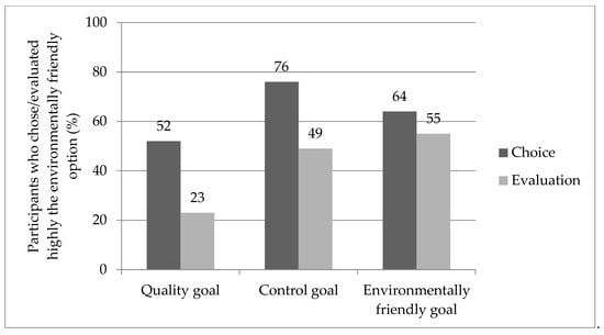 Percentage of the participants who chose/evaluated highly the environmentally friendly product as the function of goal.