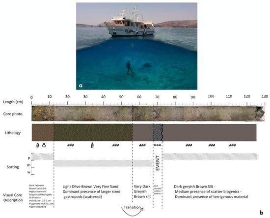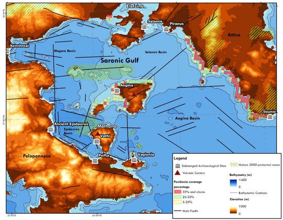 - Geraga, M.; Papatheodorou, G.; Agouridis, C.; Kaberi, H.; Iatrou, M.; Christodoulou, D.; Fakiris, E.; Prevenios, M.; Kordella, S.; Ferentinos, G. Palaeoenvironmental implications of a marine geoarchaeological survey conducted in the SW Argosaronic gulf, Greece. J. Archaeol. Sci. Reports. 2017, 12, 805–818. [Google Scholar] [CrossRef]