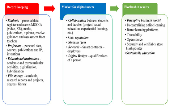 Blockchain can be applied in the higher education sector for many purposes, such as the following [34]: