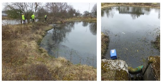 - Heal, K.; Scholz, M.; Willby, N.; Homer, B. The Caw Burn SUDS: Performance of a settlement pond/wetland SUDS retrofit. In Proceedings of the Third National Conference on Sustainable Drainage, Coventry, UK, 20–21 June 2005; pp. 19–29. [Google Scholar]