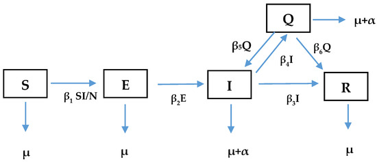 with the initial condition (S(0), E(0), I(0), Q(0), R(0)) = (S0, E0, I0, Q0, R0).