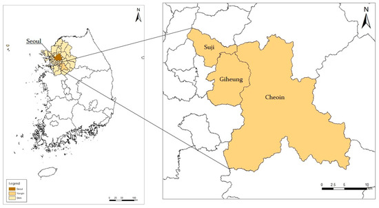 In the early stage of development starting in the 1980s, the city lacked a comprehensive development plan and urban infrastructure due to its apartment-oriented development to cope with the increasing demand for housing [3,4,5]. However, without a comprehensive plan, urban infrastructure was poorly provided, and the city had to depend on adjacent cities for daily services, which resulted in heavy traffic jams. The media described these aspects of the development with a word meaning unplanned development (‘Nangaebal’), which emphasises the dark side of urban sprawl. Since then, Yongin has frequently been mentioned in articles dealing with unplanned development; it has, therefore, become widely known as a fast-growing development-friendly city.